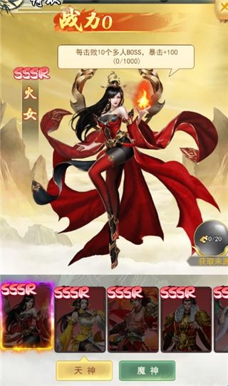 真实还原上百种上古神将,通过不同任务收服神将,自由搭配神将组合pk,现在还有首充送哪吒敖丙,VIP送朱雀化身!