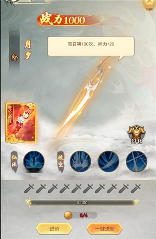 修仙2转3重开启神兵系统,玩家可以通过激活神兵来提升战力的同时改变角色穿戴的神兵。神兵可以通过升星和吞丹来提升属性,同时神兵还可以消耗进阶丹来进阶获得更高的属性。神兵1阶后还会获得主动技能,使得战斗更加顺畅。
