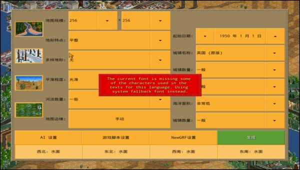 2、游戏开始之前,我们需要对地图规模、地形特点、河流数量等方面进行设置操作,最后再点击生成。