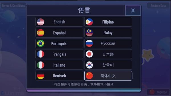 1、首先我们进入加查宇宙游戏中,游戏默认是英文状态,所以我们先设置中文;