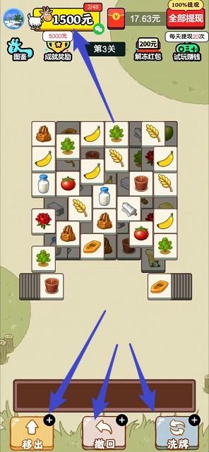 2、每一关都能获得7次使用机会的三款神奇道具,玩家们可以在关卡关键时刻运用,轻松完成消除任务。