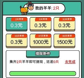 每过一关给一只羊,先提0.3元,后续如果还有时间玩的可以再兑换一两个红包。