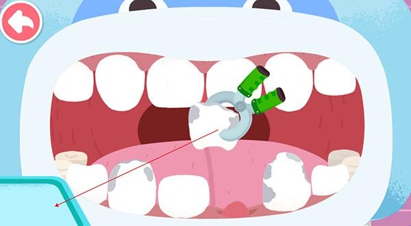 清理好口腔之后,宝宝需要拿起扫描仪,扫描小动物坏掉的牙齿。