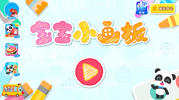 丰富的画笔工具:铅笔、蜡笔、毛笔、刷子……宝宝喜欢用哪种工具画画?快来选选!还可以交替使用多种画笔,绘制心中的理想画作。