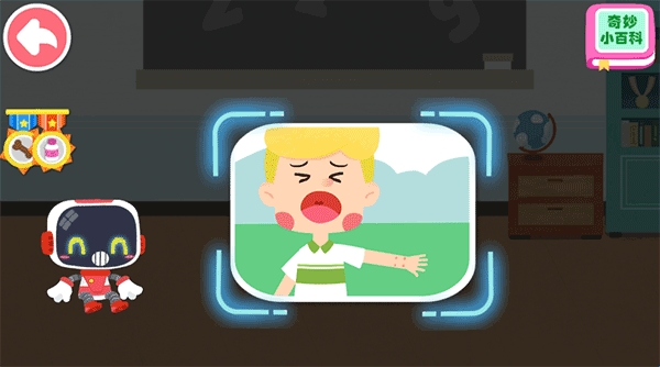 1、进入宝宝巴士救护手册游戏后,在急救选择界面选择并点击你想了解的急救知识;