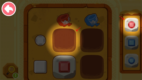 3、玩家需要通过左上方对应的是左边图案的颜色,左边的左侧对应的是放置在小坑里面的图形,将图形放到正确的位置就可以通过。