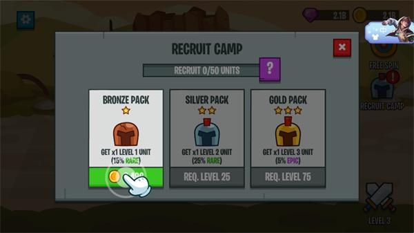 4、随着关卡的增加,敌人会越来越强,你需要通过招募来获得更多的士兵。