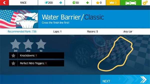 • 在8种不同游戏模式中挑战对手,包括门柱漂移赛、撞击赛等等。