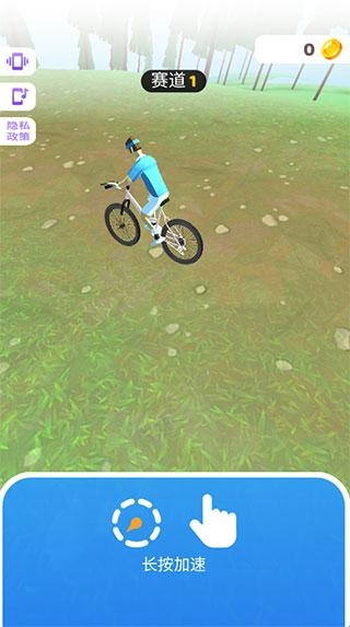 1、从本站下载并安装,打开游戏后,长按屏幕是游戏开始,也是自行车加速;
