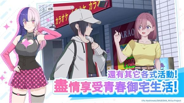 游戏中,玩家将可尽情享受二次元世界的御宅生活,约会、社团活动、角色收集,应有尽有,在享受专属的故事内容之外,还可以玩到独特的战斗玩法,透过专属的游戏系统,让玩家可以轻松的游玩,就算放置也能获得必要的升级素材来育成你的心仪的Coser们!