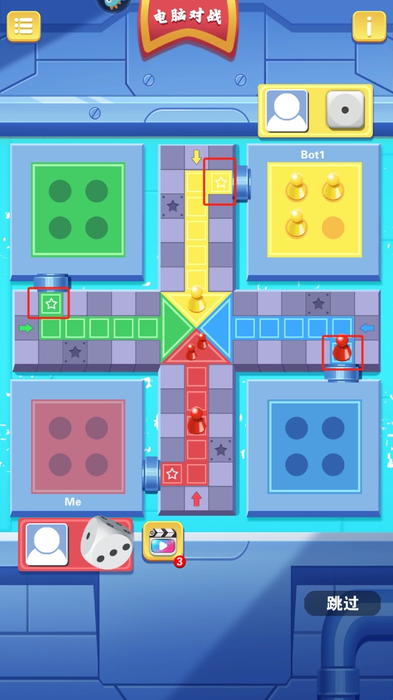 1、进入游戏,点击骰子开始游戏,开局只有骰子掷到6点,棋子才能出发