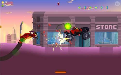 2、boss枪械车,背后带有机枪,中级伤害,每次五发,第一时间可以跳高点把枪手干掉,枪手一出现就第一时间干掉,这样可以降低对付它的难度