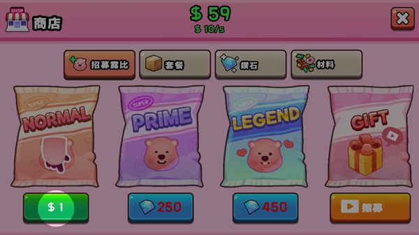 4、在商店可以招募露比,一共有初级,中级以及高级三种loopy供你选择,初级loopy只需使用钞票就可以招募,但是中级和高级需要使用钻石才行