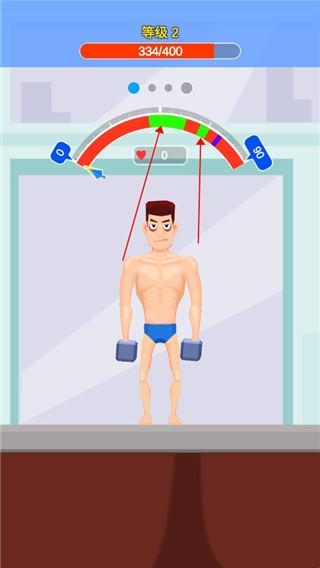 1、游戏开始后,点击屏幕不放,让指针停在绿色区域即可开始锻炼,停在红色区域则是失败。每次开始可以锻炼三次,失败直接结束。