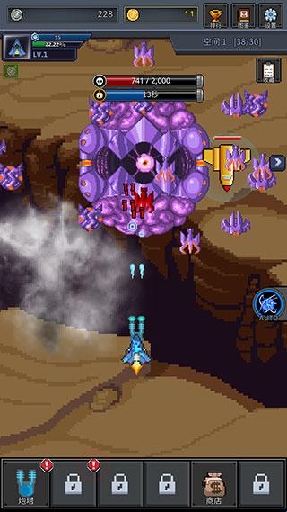 摧毁敌方飞船收集银和金,加强和扩大炮塔,创造最好的舰船。