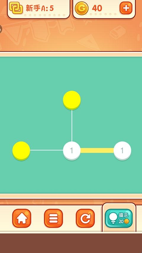 5、数字连线模式下,将端点两两相连,每连接一条线段,两头端点上的数字就会减一,所有端点数字都减为零就能过关。
