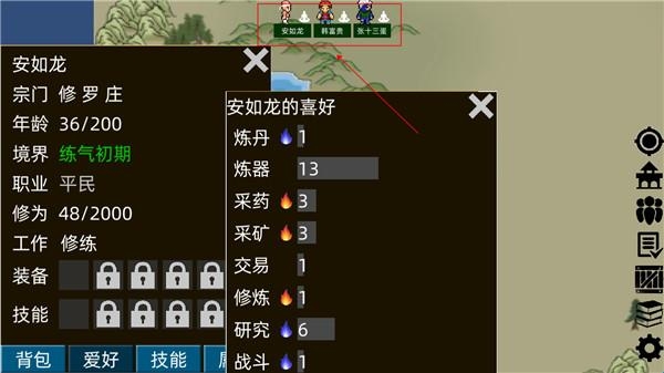 4、点击上方的角色即可查看每一个弟子的属性倾向。