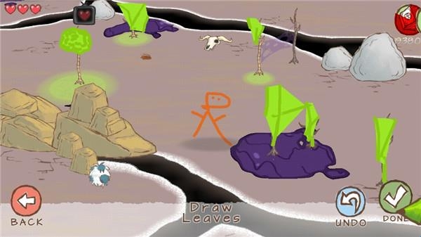下方的树叶画笔就是你的武器,在干枯的树枝上画个树叶,然后就能获得重生,并且还可以消灭即将要出现的各种怪物哦!
