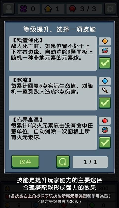 1、消除元素,通过双击元素球,就可以将连在一起的相同元素球消除,消除越多,造成的攻击就越多。