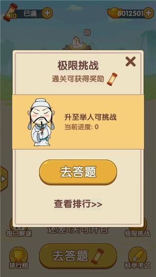1、加官进爵:用自己的才华,一路答题闯关,平步青云,加官进爵;