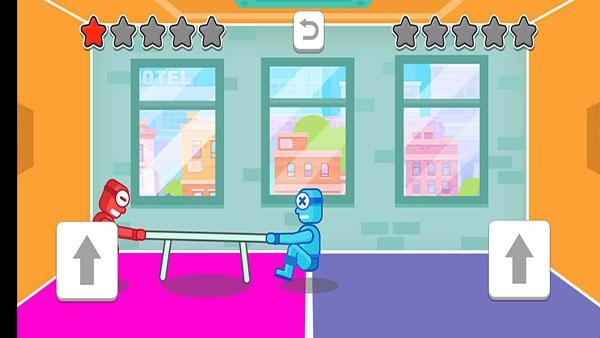 双人口袋大作战是一款休闲益智类的游戏,玩家在游戏中将操纵蓝色或黄色小人中的一个,你将和对方手拉手,谁先把对方拉过白线即为胜利,此外游戏中还有很多别的小游戏,都是以娱乐休闲为主,游戏内容非常丰富,游戏画面精美幽默,是一款十分适合在休闲时刻打开玩一玩的游戏,你也快来试试吧!