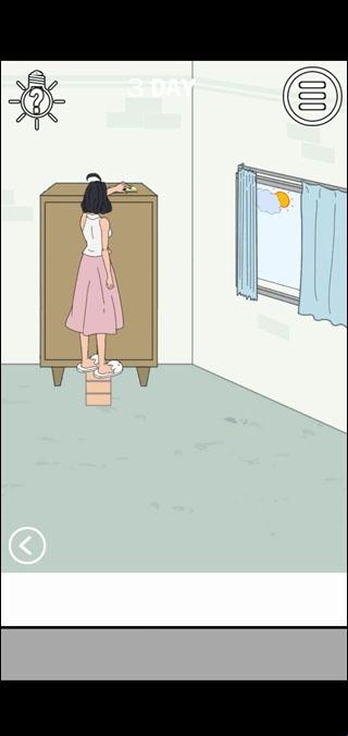第三关,这关共有两个房间,首先玩家在前一个房间里面扯掉海报,点击获取里面的三块砖头,然后进入下一个房间,将砖头依次叠加起来(注意若取的多了就会触发隔壁女生的暴脾气,及闯关失败)。