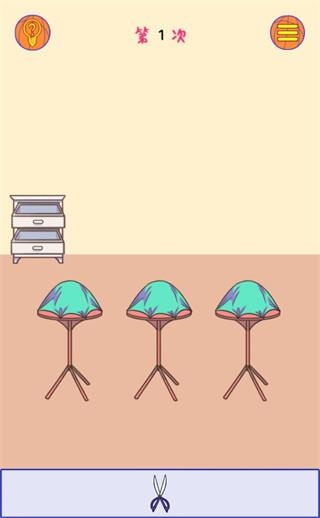 第一关:点击柜子里的剪刀,剪破中间那个即可通关。