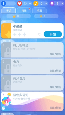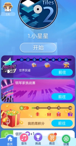 1、打开钢琴块2,点击开始游戏,选择游戏模式,这里提供经典、世界民间、钢琴家挑战等模式。