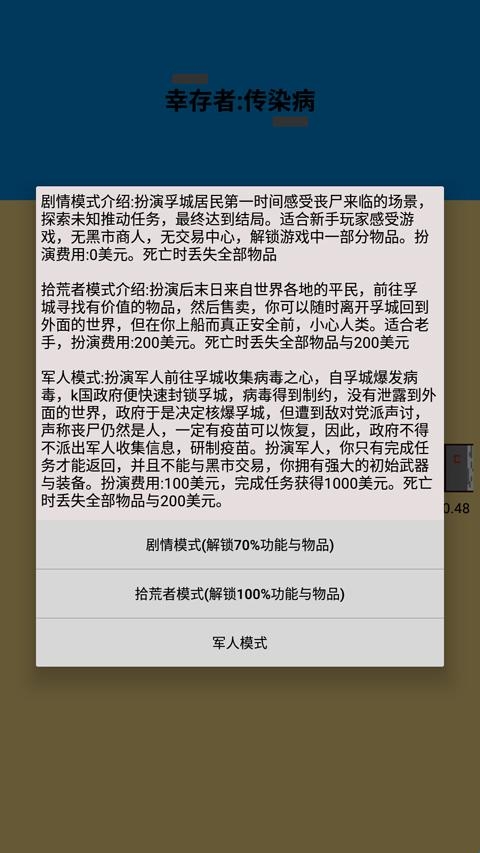 2、选择游戏模式,现有剧情模式、拾荒者模式、军人模式三种;