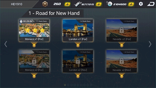 全部的公路赛道都能选择挑战,开局就拥有大量已解锁的赛道选择,完全可以根据自身的喜好想法挑选。