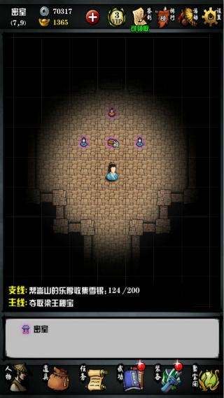 3、武功修炼:通过打坐、修炼、挑战副本等方式提升武功等级,解锁更强大的招式。