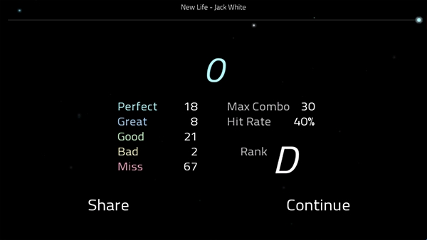 5、开始游戏后游戏屏幕会变成横屏,玩法和节奏大师差不多,上分会显示歌曲进度条