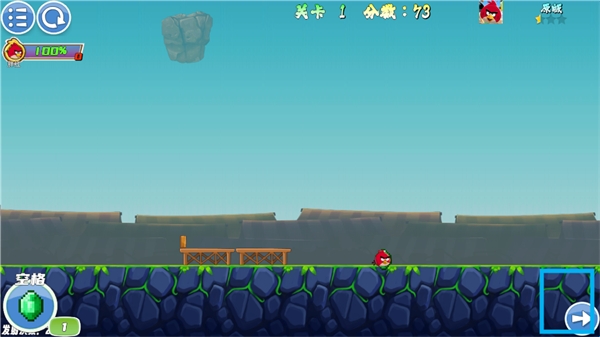 4、将鸟发射出去,点击箭头进行下一关。