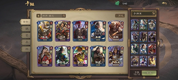 手牌流的思路有两个,一个是下曹嵩,靠马元义,法正和sp蔡过牌,起到同时养曹嵩和杜预的作用。朱儁用来养卢植,还能卡对面的手,最后六费看情况下甄姬或者荀彧。