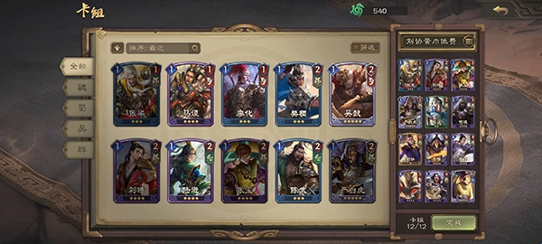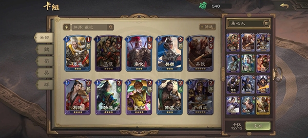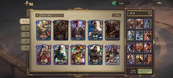 有向宠和孙权的情况下才可以玩,没有孙权的话不要玩,太容易卡手了。很简单的卡组,1~3费哪里亮了点那里,有牌就下,下同一个战场就可以。在四费的时候如果还没有出向宠就下孙权制衡,争取在五费下向宠,六费再看战场情况补充一个大哥。其他尽量全带大哥牌,如果大哥不够多的话,可以带一个法正复制对面的。
