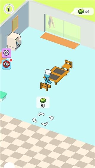 1、首先进入我的迷你厨房最新版,左右移动屏幕控制人物角色移动;