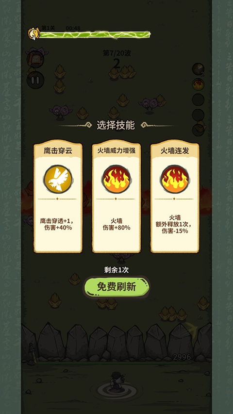 2、随着最上面进度条满了后就可以升级,升级可以选择一项技能来辅助玩家游玩。