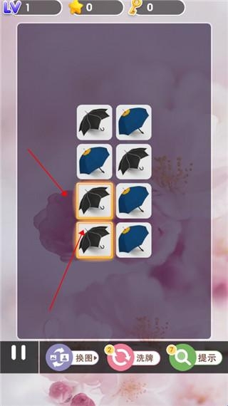 1、寻找两个相同的图案,分别点击即可消除