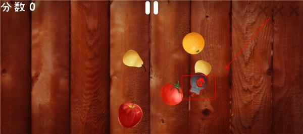 4、但需要注意的是,和水果出现的还有炸弹,切到炸弹及游戏结束