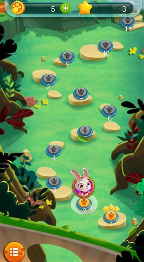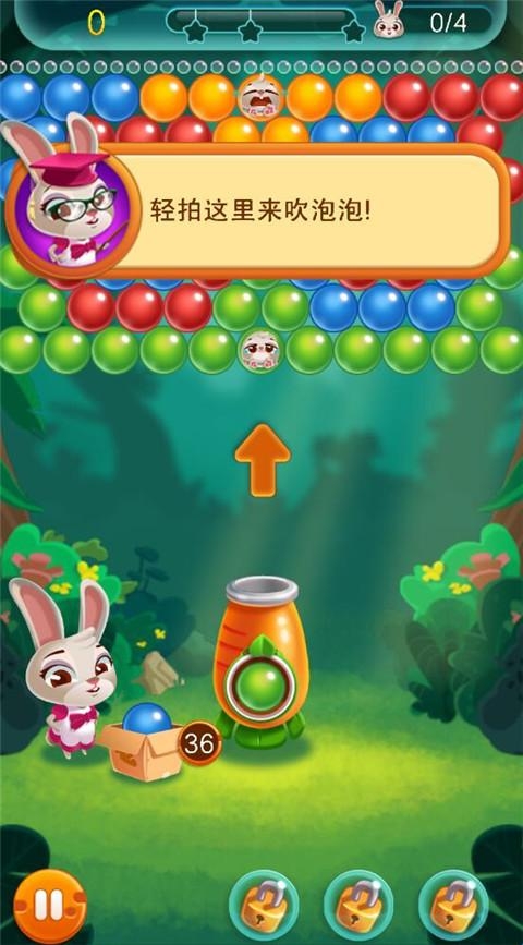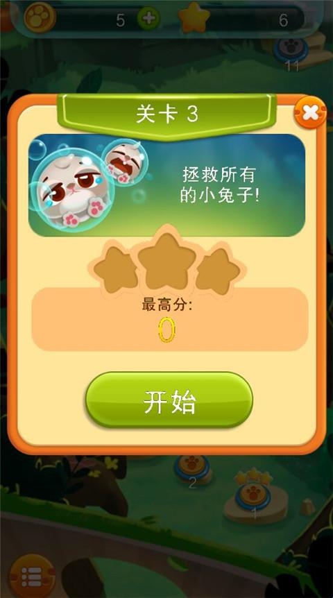 6、基础消除规则:调整发射角度使泡泡颜色匹配,三连即可消除并解救兔子。