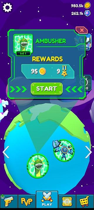 玩家点击屏幕中间的两把剑图标就可以进行游戏对战选择,可以选择怪兽或者机器人进行对战。