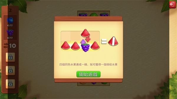 5、游戏玩法就是三消模式,相同的水果进行合成就可以消,在规定的步数内收集水果即可;