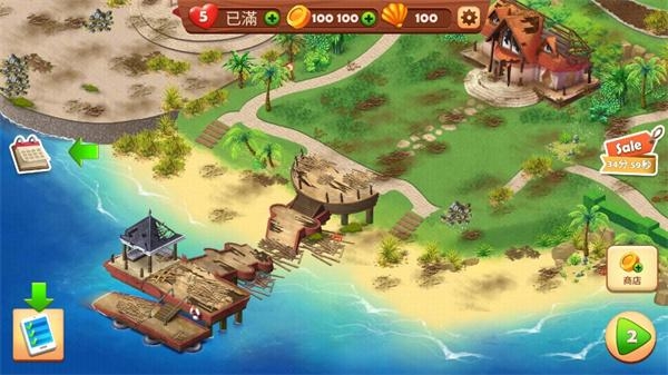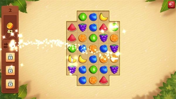 1、通过消消乐游戏获得快乐,尽可能多地赢得贝壳。在最短的时间内消掉最多的水果,这样才能让您建立装修你的度假村!