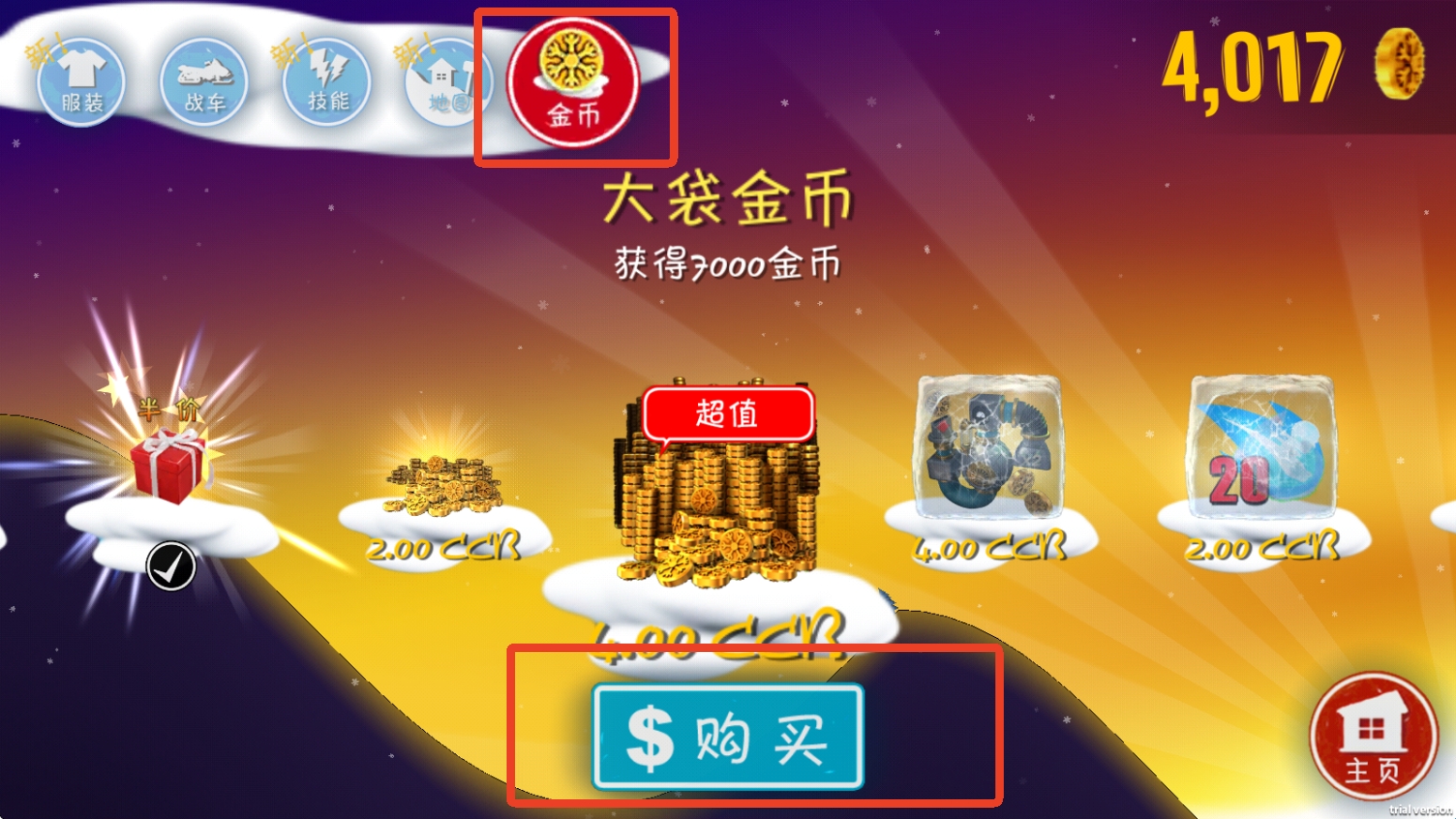 6、拥有了足够的金币就可以去买自己想要的服装、技能、战车啦!