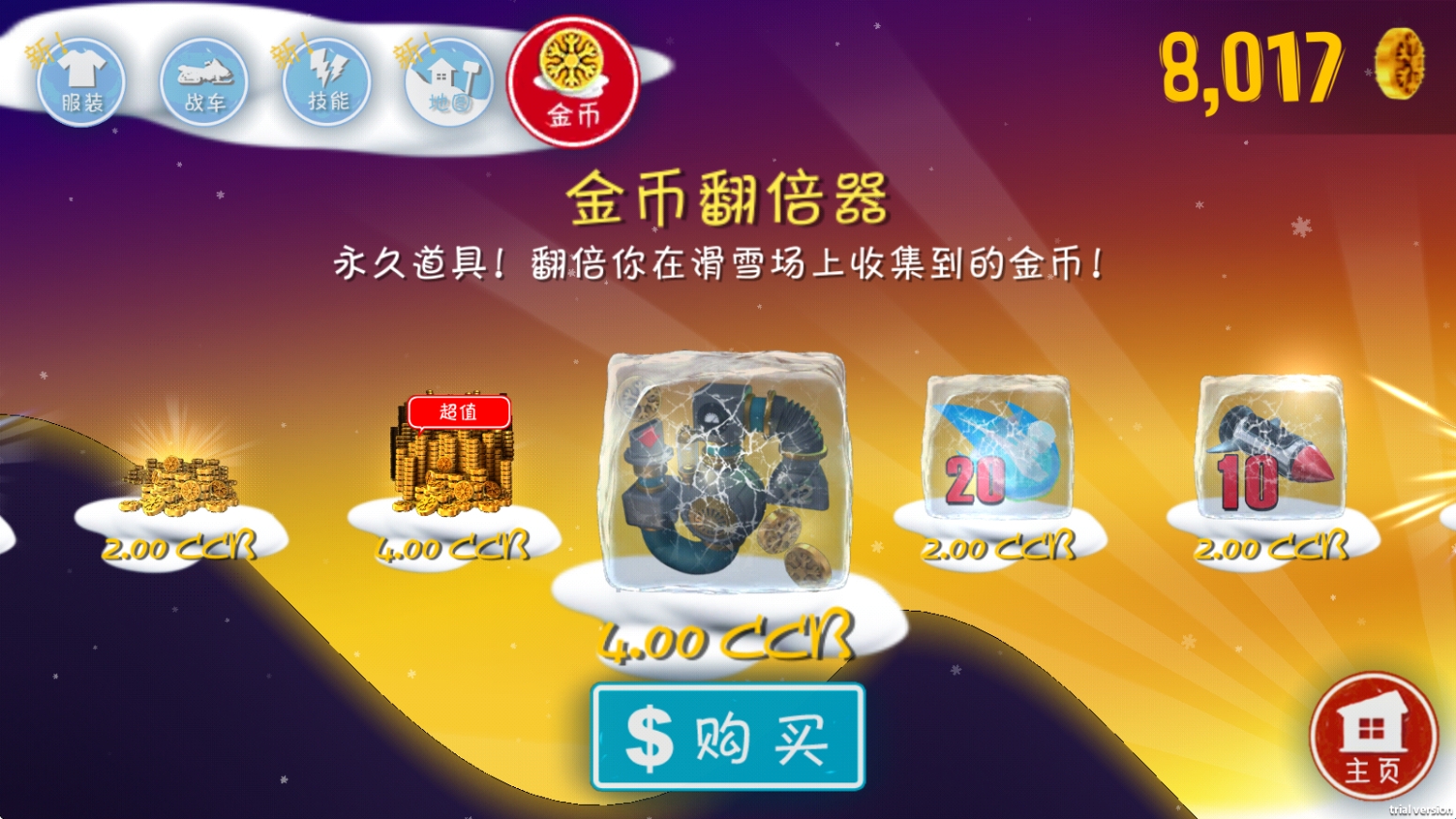 5、如果你想慢慢收集金币也可以选择购买金币翻倍器,这是永久道具哦!