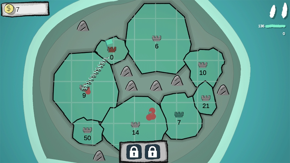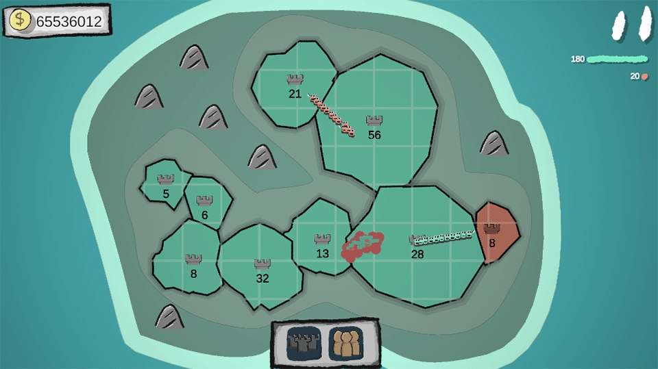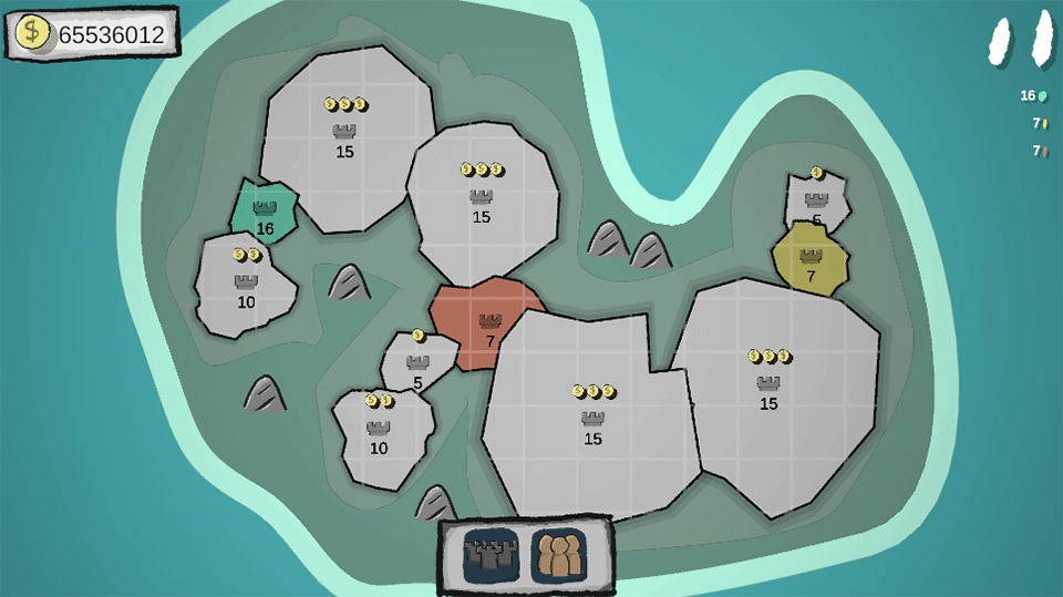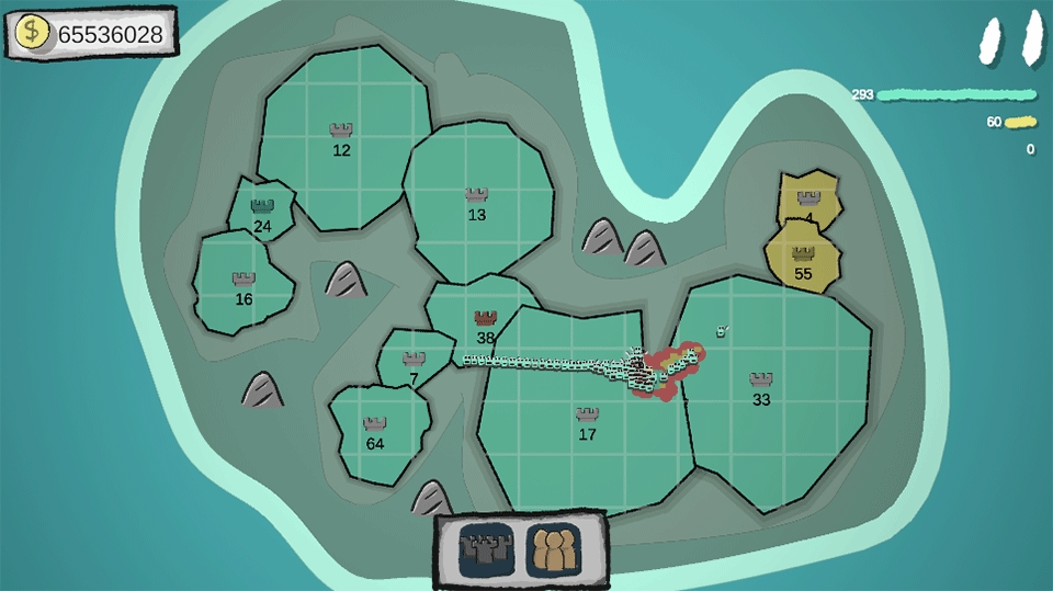 1、玩家先等士兵增长到一定数量,开始进行领地攻占。