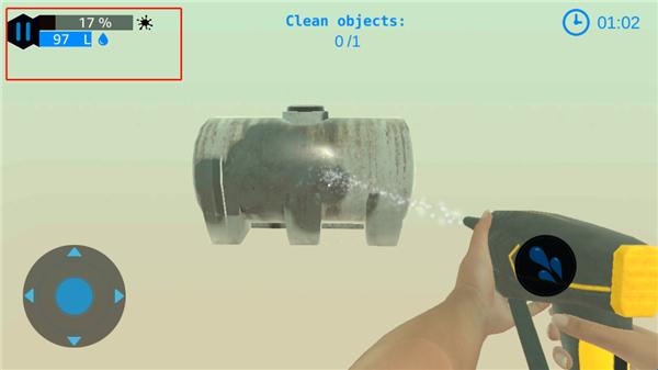 4、玩家可以按右边的水滴键,清理眼前物体,左边控制360的视角,你需要360无死角清理眼前的物体;