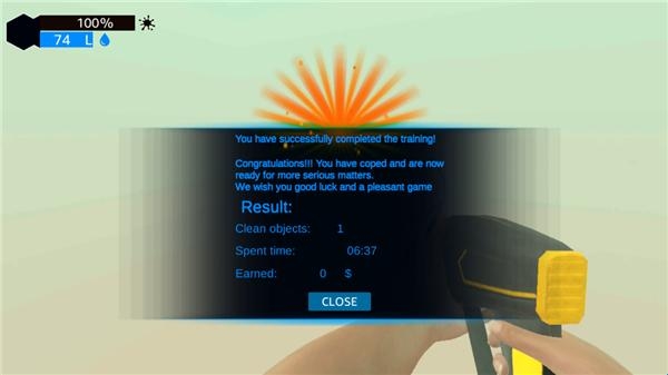 3、里面为玩家提供了关卡任务,玩家需要清理眼前的物体,点击关闭;