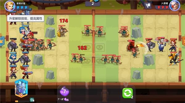 3、进入战斗放置角色在地图中,放置不同角色需要消耗资源(点击刷新可以出额外的角色)。