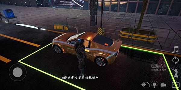 5、走到新场景出生点旁边的赛车前,出现提示时,点击灯泡左侧的【车门图标】即可上车驾驶,附近没有赛车时,点击此按键没有任何效果。